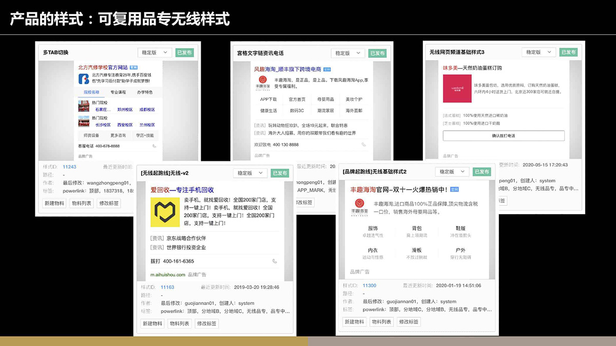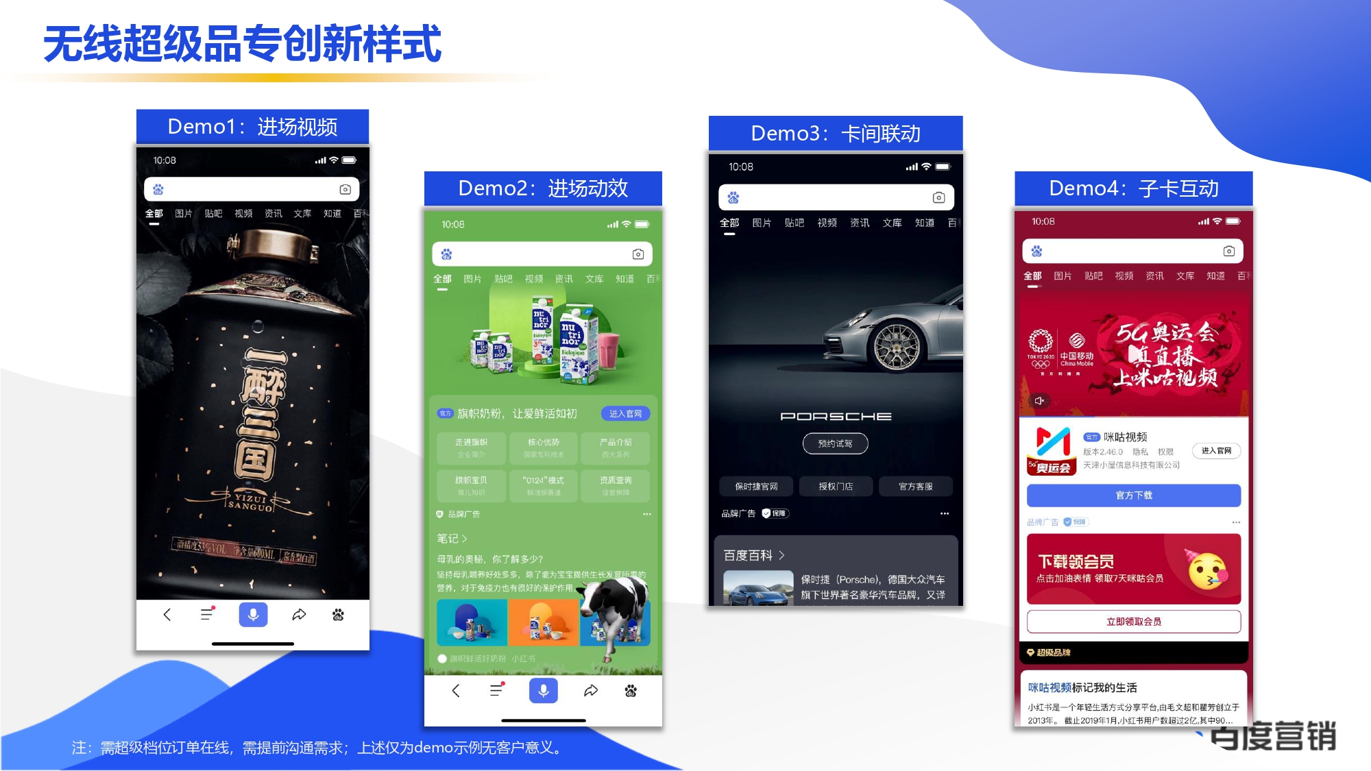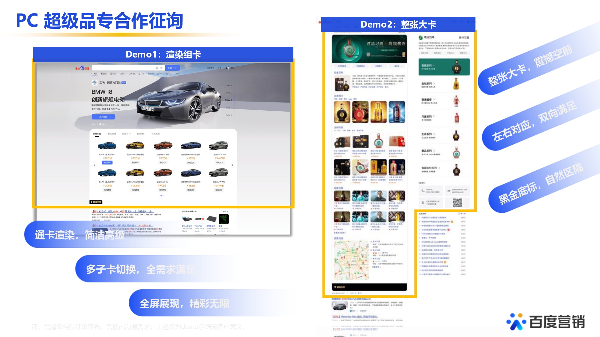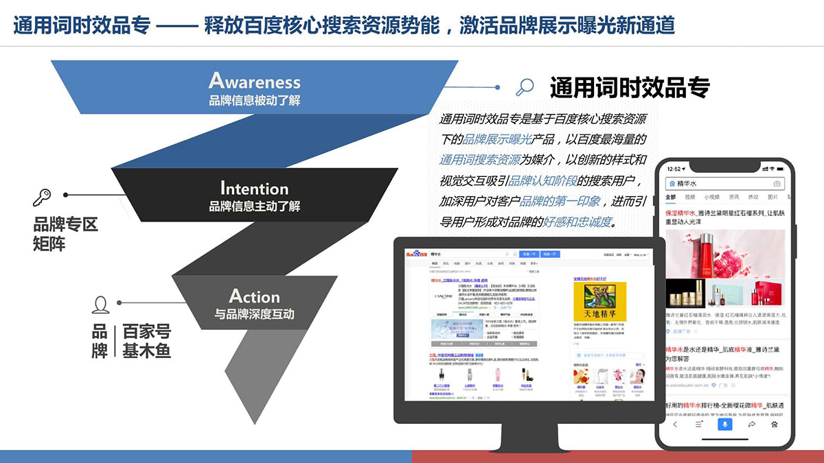 品牌展示曝光产品,以百度最海量的通用词搜索资源为媒介,以创新的样式和视觉交互吸引品牌认知阶段的搜索用户,加深用户对客户品牌的第一印象,进而引导用户形成对品牌的好感和忠诚度。